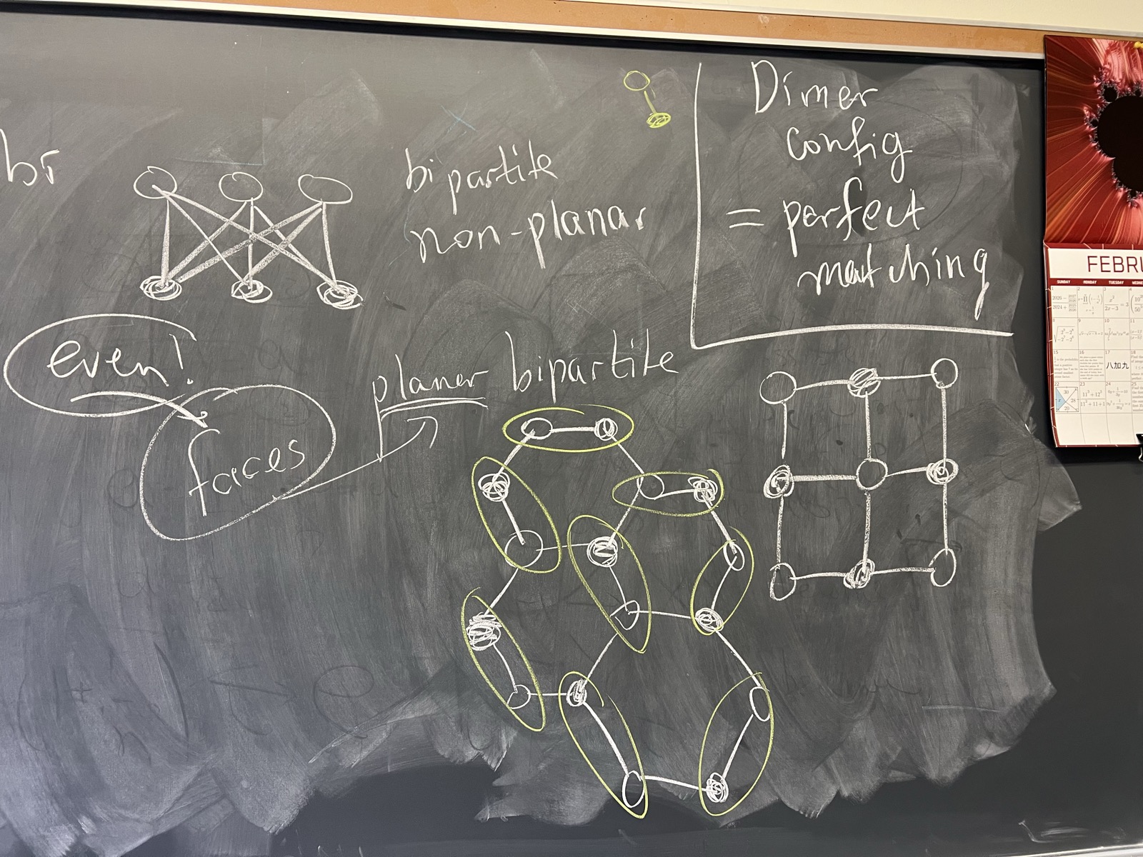 - (Feb 19) Dimers on bipartite graph (blackboard photos)